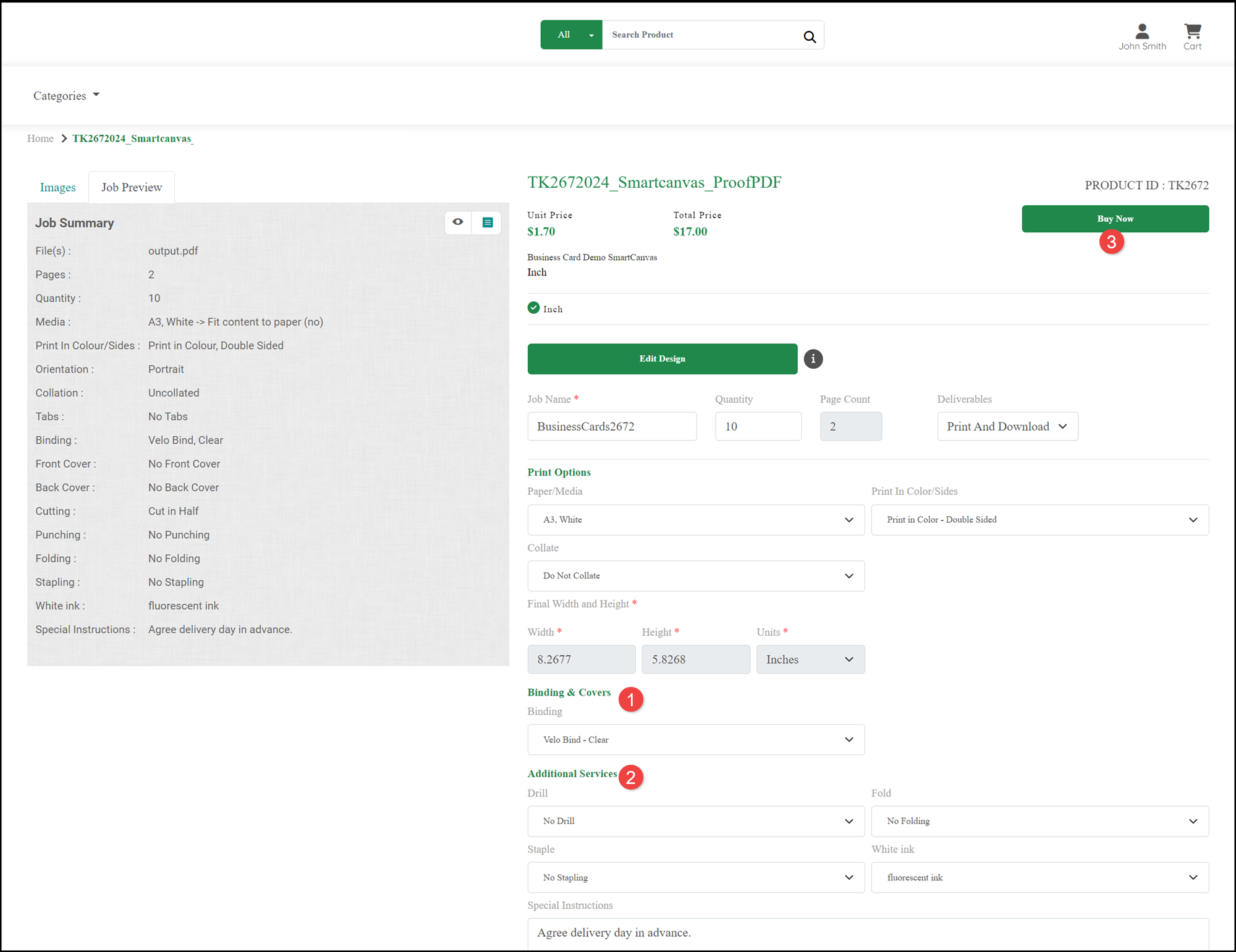 - Binding & Covers options, for example, cover materials and binding options for personalized books or calendars.